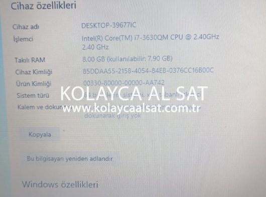 | İşlemci | Intel Core i7 |