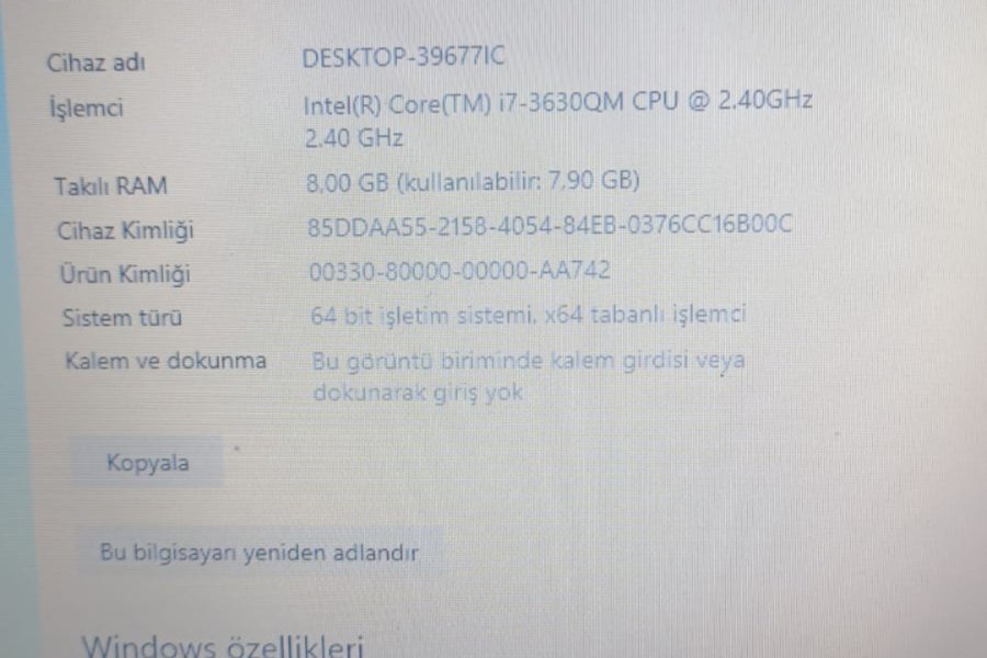 | Sabit Disk | 640 GB |